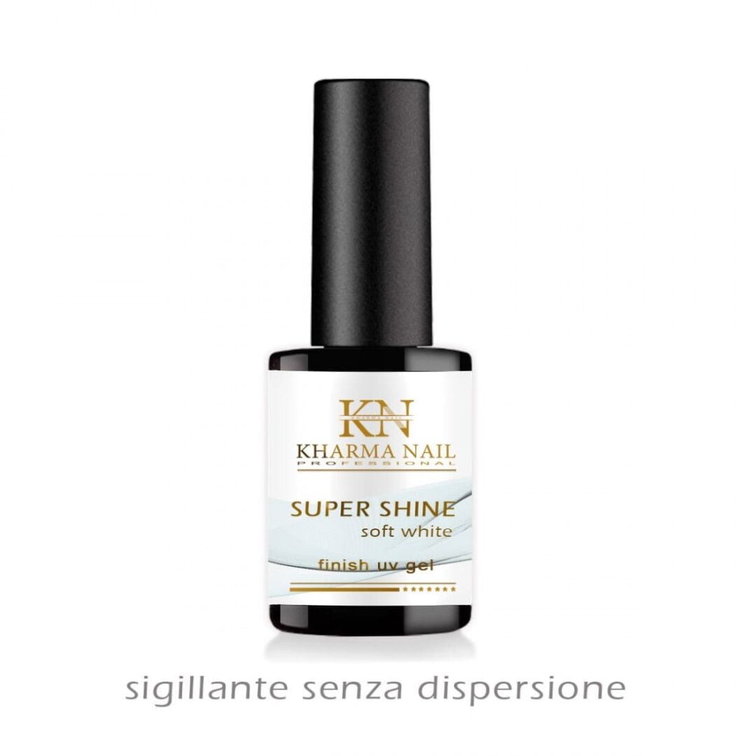 Gel sigillante Super Shine Soft White lucido ed elastico, senza dispersione, di consistenza fluida. Ha una colorazione bianco lattiginoso, molto leggera che non si macchia e non ingiallisce.